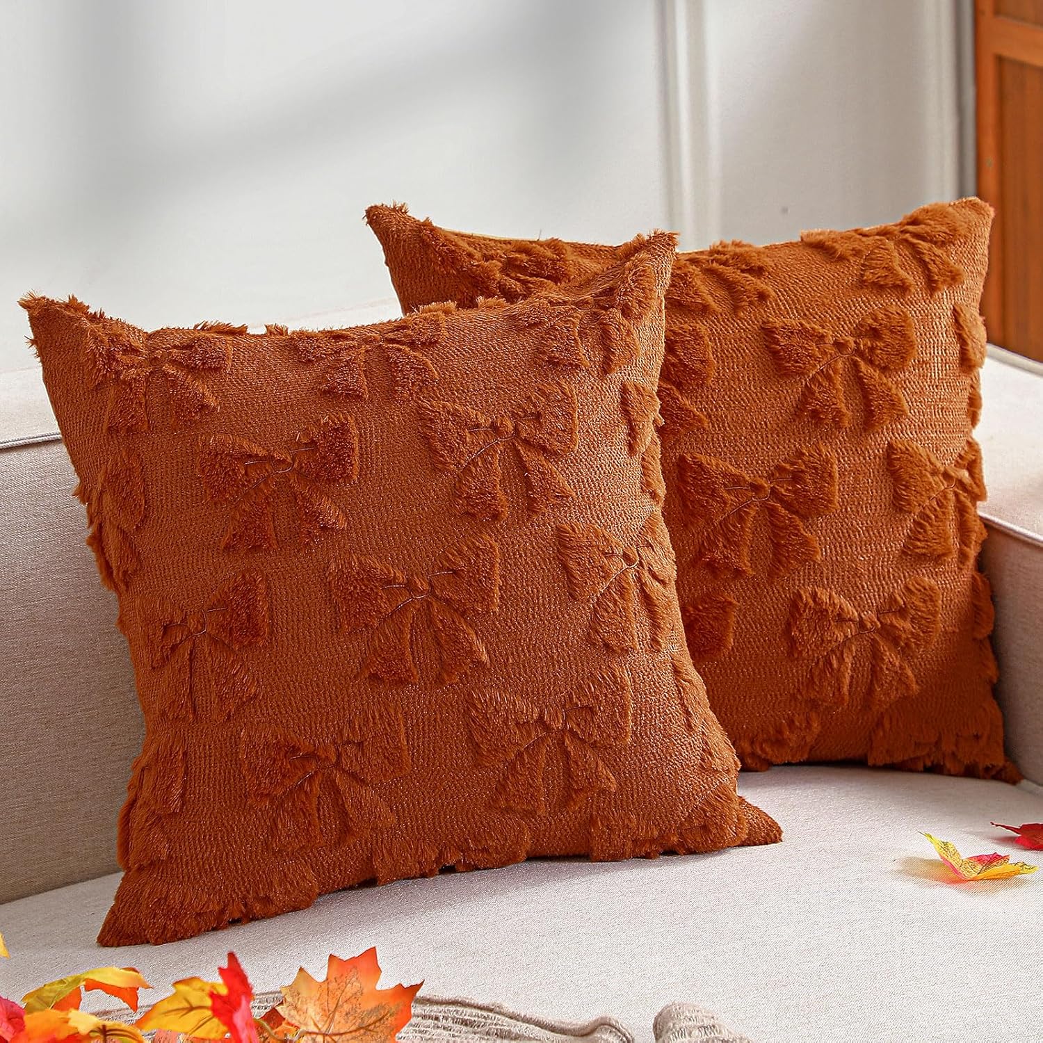This 2 pack bow pillow covers comes in several colors, and this caramel color would be so pretty for fall.