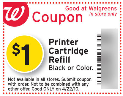 Just a reminder that TODAY is the only day to get your printer cartridge filled for only $1 at Walgreens. Get your coupon HERE and take it to your nearest Walgreens for $1 printer cartridge refills. You can check HERE to see if they carry your model.