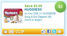 New High value coupon just listed for $3 Off Any One Huggies Snug & Dry Diapers (60 Count or Larger)