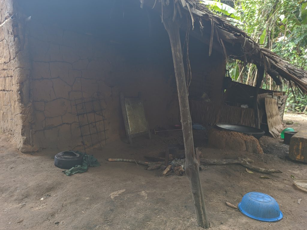 The Franks cook at the back of their house with firewood because it is the cheapest they can find. Mr Frank is a farmer and has a small Cassava farm that the whole family farms in and they harvest and sell to get food for their family. Mrs Jonah sells some of their farm produce and that was were she was when we visited. Mr Jonah also uses his bike to transport people but this is often hard work and does not pay that much.