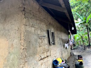 We met the Etim family in Mbiaso village, when we got to the compound we did not meet anyone outside, we had to knock the traditional way which is to shout outside and speak in the local dialect, we did this because the house did not have a door. When we did that we saw the mother and children come out. They gave us a receptive welcome. Mrs. Etim asked us what brought us to her house, that she has not seen this face before, we told her we are not from the community that we have something for her and she was surprised and eager to see what we have for her, we told her someone donated a bag of rice to her, she did not believe her ears. She was so happy and the children around her were happy. She asked if it was donated to her by a politician,that she is ready to vote for the person come 2027, we told her we were not sent by a politician, that someone donated it to her, she was surprised that someone she did not know from Adam could just give her a bag of rice, she prayed for the donor. The Etim family stays in a one room apartment, the house is a mud house which is on the verge of collapsing, but she has no choice than to live there because she does not have money to build a house with cement. The family is blessed with 3 kids and they are all out of school because there is no money for them to continue. The house lacks basic amenities, they do not have clean water they go to the stream to fetch and some people defecate in that same water and there is no electricity in their house, they have lived like that for years.