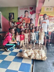 Learn how you can be apart of helping people who are in need with our Chicken Orphanage Project or our A Thrifty Mom Bag of Rice Project . In 2016 we started helping a young man named Ikechukwu from Nigeria. Summer of 2019 we were able to visit his family in Aba, Nigeria. While there we saw widespread poverty and lack of basic needs. We also met a young man named Isaac, smart and hard working but could not find employment. After talking a bit we found he had built a chicken coop and wanted to farm chickens. We asked him if he would raise chickens for us that would then be donated to feed children in local orphanages. The only food or supplies they get are what are donated, so they often go without any source of protein. We would like to invite you to help meet one of those basic needs, by providing Nigerian families with rice or chickens. This gift will feed a large family for a few months, or a single person a year. It also reminds them they are loved, and brings most of them to tears… as a full bag of rice is one of the most generous gifts they will ever receive. You can also read about other families we have been able to bless here. Chickens are only available to purchase as once they are big enough to butcher, so if you see they are out of stock he is in the process or growing another flock.