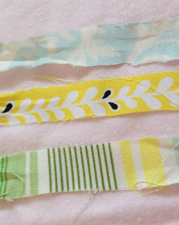 Fabric scraps. I chose 3 different patterns with pastel colors. Its a new change from