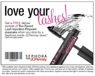 Free Too Faced lash Injection MascaraUncategorized / 1 Comment You may want to print this coupon HERE ,and take it to your Sephora counter inside JCPenny to get a free Too Faced Lash Injection Mascara. Only while supplies last, read coupon for detials. Thanks Merissa