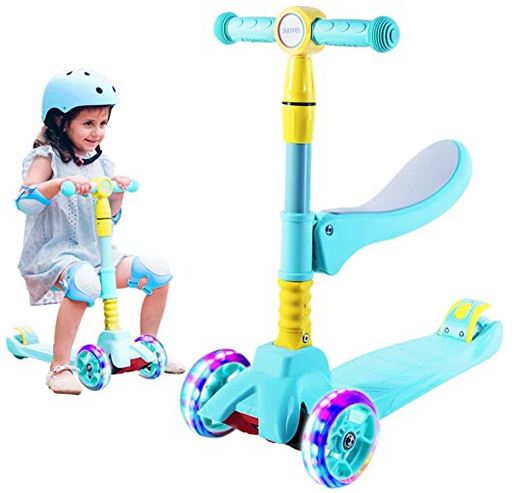 Order HERE —-> 3 Wheel Scooter for Kids Ags 2-12 – Foldable Scooter with Removable Seat, 3 Adjustable Heights, Extra-Wide Deck with 4 Light-Up Wheels, Best Gifts for Boys and Girls Toddler