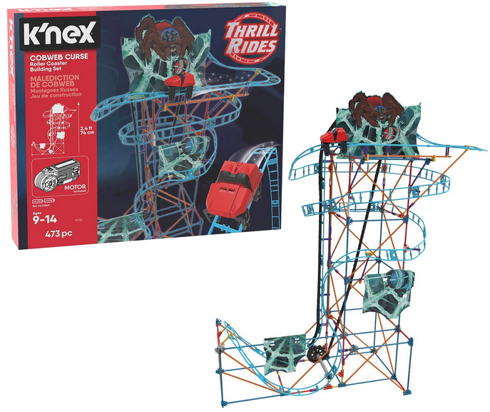 - OVER 470 PIECES – The K’NEX Cobweb Curse Coaster Building Set contains 473 parts to create a working roller coaster!