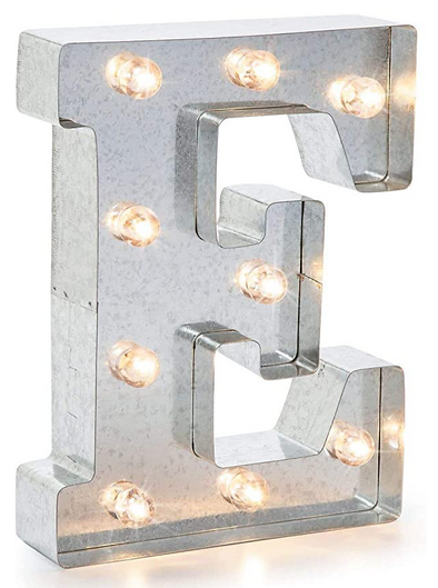 - MARQUEE LETTER – This 9.87” tall metal marquee letter “E” is the perfect addition to any wedding, special event or as unique metal wall or tabletop décor. For indoor use only.