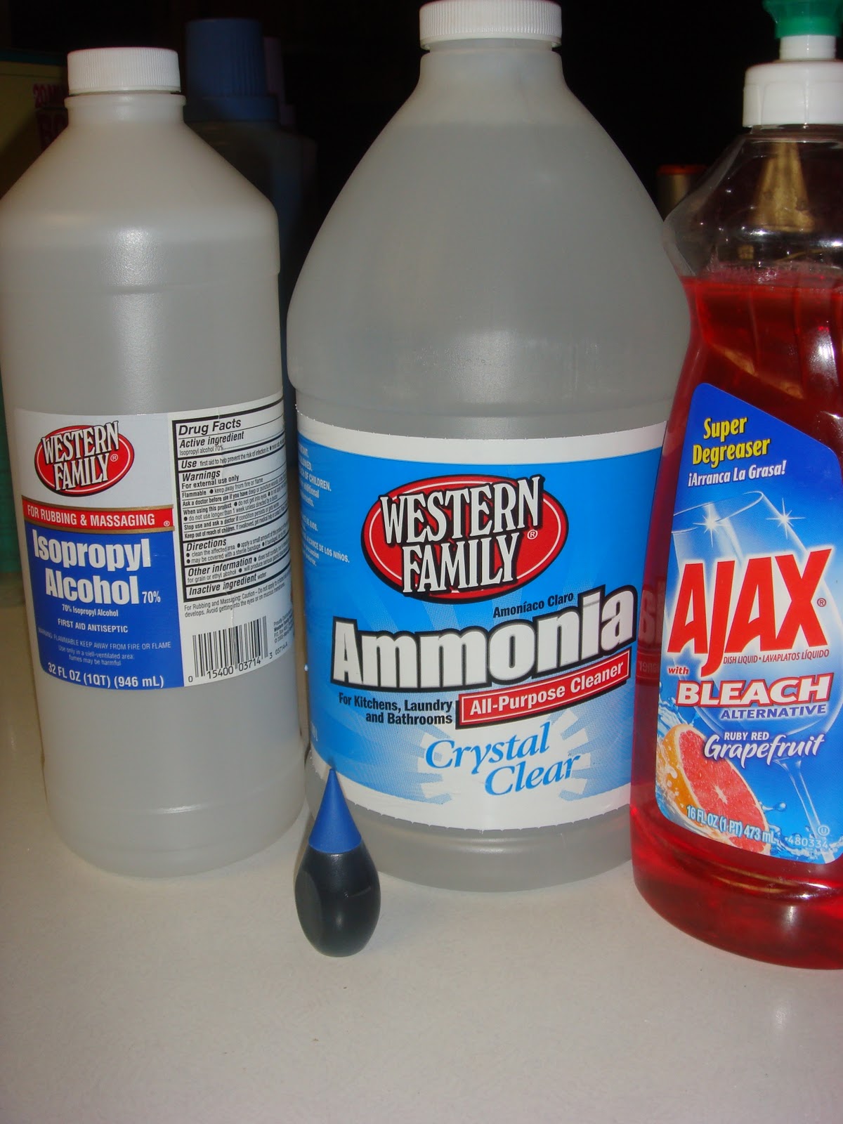 Just 3 simple ingredients: rubbing alcohol, dish soap and ammonia