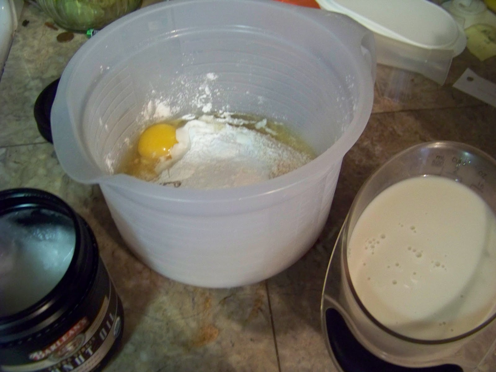I primed my griddle with coconut oil. (It’s in 2 pics above, black container.) This adds great flavor in the place of butter or oil, and really adds the tropical flavor! After learning the benefits of adding coconut oil to my diet (cold pressed, not “refined”), I try to use it every time I can in the place of butter or margarine.